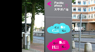 廣場在戶外環境中需要設計有特色的標識識別系統,以標識的形式傳送是一種速度推廣和發展,也是大眾、消費者視覺傳送最有效的形式之一,現代標識已經成為人們共同直觀的一種引導識別方向牌。