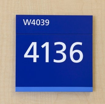 藍色風格系列標識設計欣賞,白色的數字顏色設計與深藍色底部標牌色彩的組成結合,突出整塊標識牌的設計別致、顯眼、形象,視覺上的沖擊魅力很強,易識別。